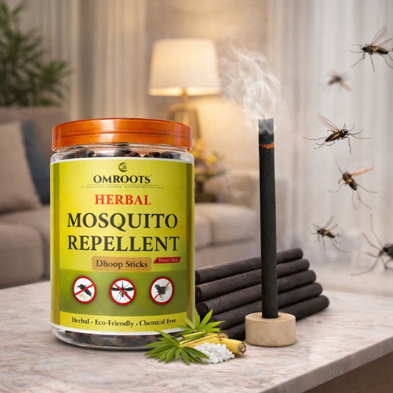Say goodbye to toxic mosquito coils and chemical sprays! OmRoots Herbal Mosquito Repellent Dhoop Sticks are crafted using a traditional Ayurvedic formula with pure cow dung, neem, lemongrass, camphor, and natural essential oils — creating a powerful yet safe mosquito-free environment for your home.