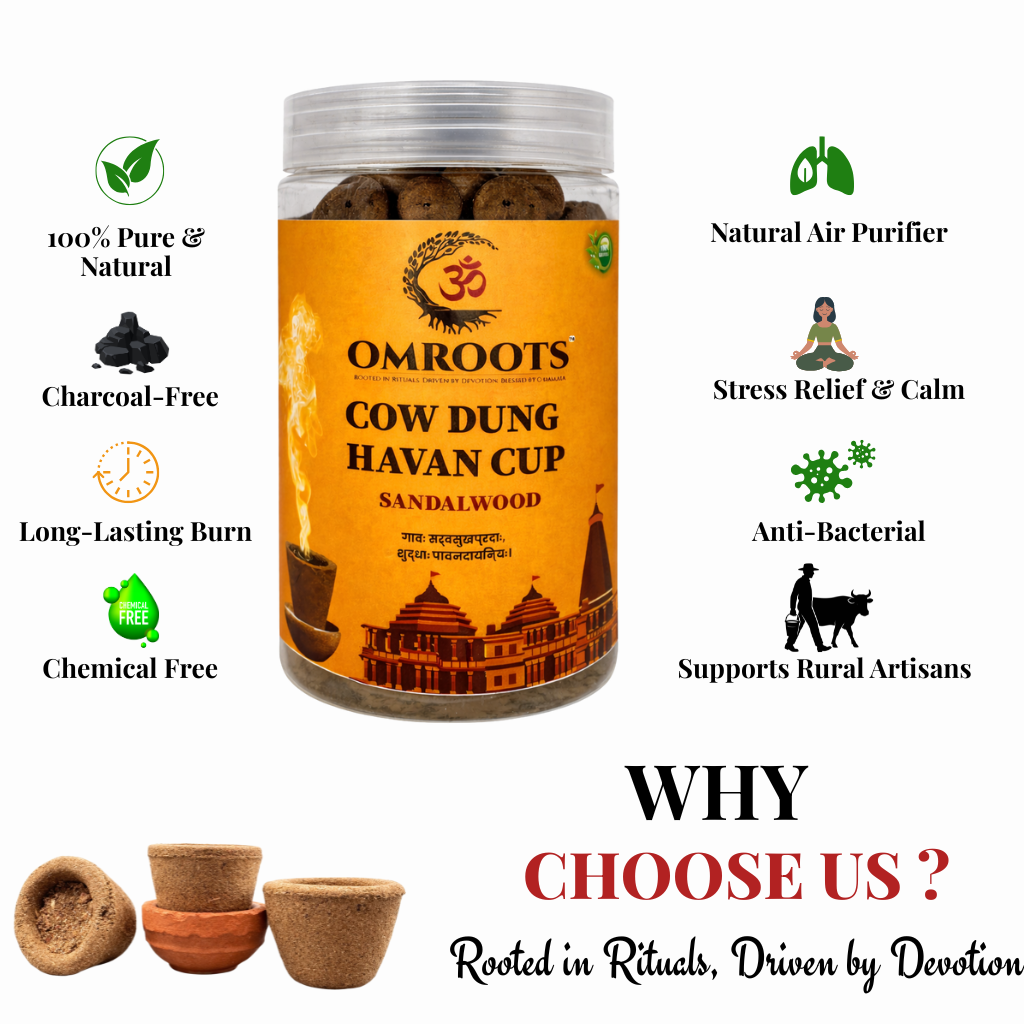 Made without charcoal, chemicals, or artificial fragrances, these havan cups offer a cleaner burn compared to conventional incense or dhoop. Each cup is easy to light, long-lasting, and produces minimal smoke, making it suitable for indoor use during prayers or meditation sessions.